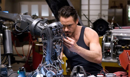 2) O resultado da cena com Tony Stark no laboratório.