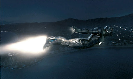 Na nova foto de Homem de Ferro, agora temos Tony Stark testando a armadura. Será que esse local é a casa dele? Tudo bem que ele é milionário... pode até ser mesmo =D